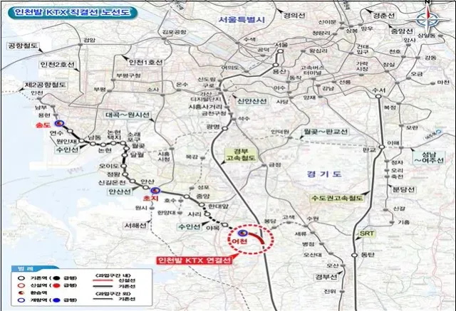 인천발 KTX 직결사업은 수인선과 경부고속선을 연결하는 3.19km의 구간의 철도를 신설하고, 기존 송도역(인천), 초지역(안산), 어천역(화성) 등 3개 역을 개량하는 사업이다.