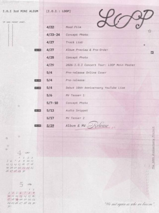 새 미니앨범 제목인 ‘I.O.I : LOOP’ 역시 여러 해석을 낳는다. 한 번 끝난 줄 알았던 시간이 다시 이어지고 멈춰 있던 이름이 다시 현재의 흐름 안으로 돌아온다는 인상도 준다. 그래서 이번 활동은 단순한 향수 자극에 그치지 않고 아이오아이라는 팀이 지금 시점에서 어떤 모습으로 다시 기억될지를 보여주는 자리가 될 것으로 보인다.