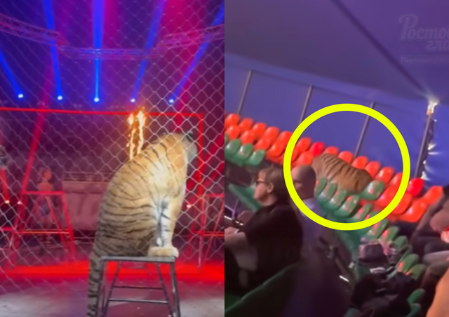 러시아의 한 서커스장에서 공연 도중 보호 그물이 무너져 내려 호랑이가 관객석으로 뛰어드는 아찔한 사고가 발생했다.