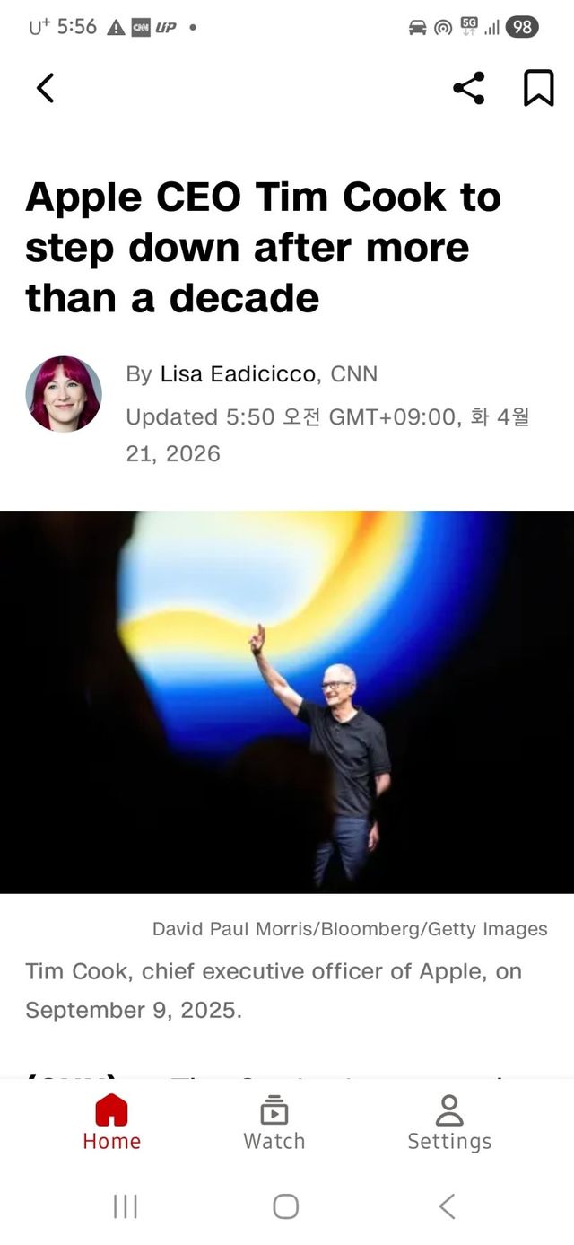 팀쿡은 이사회 의장을 맡아서 완전 회사를 떠나는건 아닌가봐요