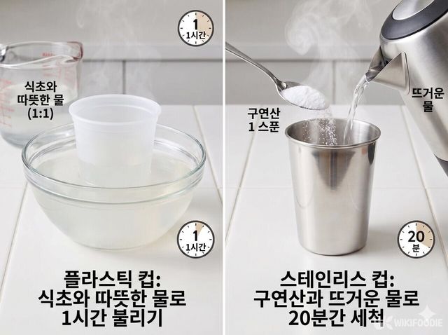컵의 소재에 따라 냄새를 빨아들이는 성질이 다르기 때문에, 무작정 세제로 닦기보다는 재질에 맞는 세척법을 선택해야 비린내의 고리를 끊을 수 있다. 컵 속에 숨은 악취를 뿌리 뽑고 다시 새 컵처럼 깨끗하게 사용할 수 있는 구체적인 관리법을 소개한다.