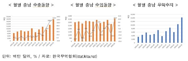 글로벌 경기 불확실성과 중동발 지정학적 리스크 속에서도 충청권 지역(대전·세종·충남)의 3월 수출이 전년 동월 대비 두 배 이상 폭증했다.
