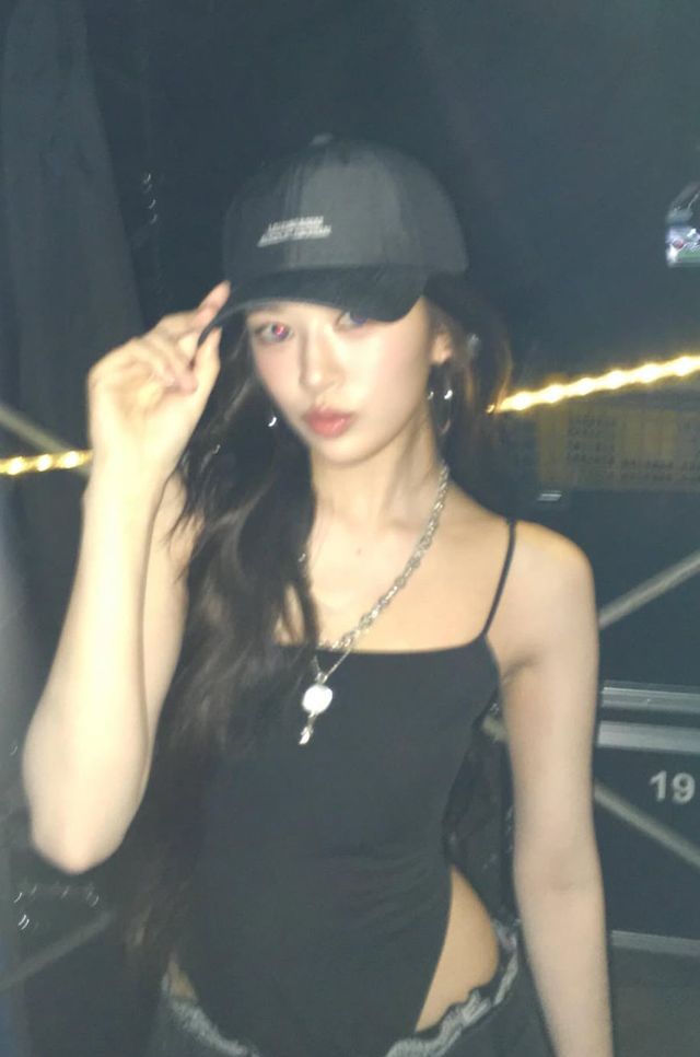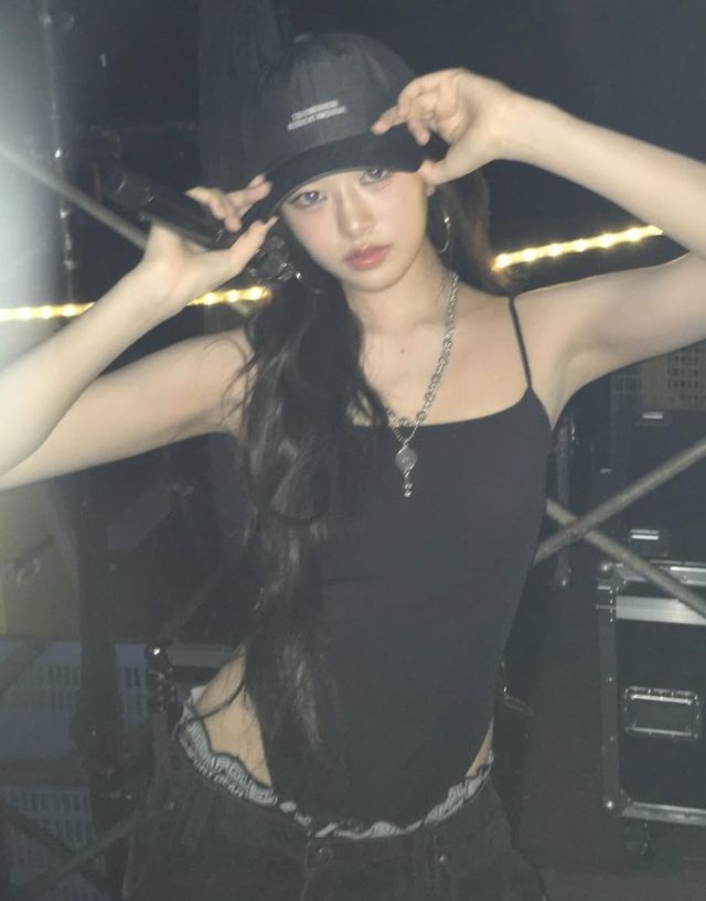 사진 속 안유진은 블랙 슬리브리스 의상에 볼캡을 매치한 스타일로 시크한 매력을 드러냈다. 무대 뒤 공간에서 자연스럽게 포즈를 취하거나 모자를 살짝 눌러쓰며 카메라를 응시하는 모습이 눈길을 끈다. 특히 긴 웨이브 헤어와 또렷한 이목구비, 은은한 메이크업이 어우러지며 무대 위와는 또 다른 분위기를 자아냈다.