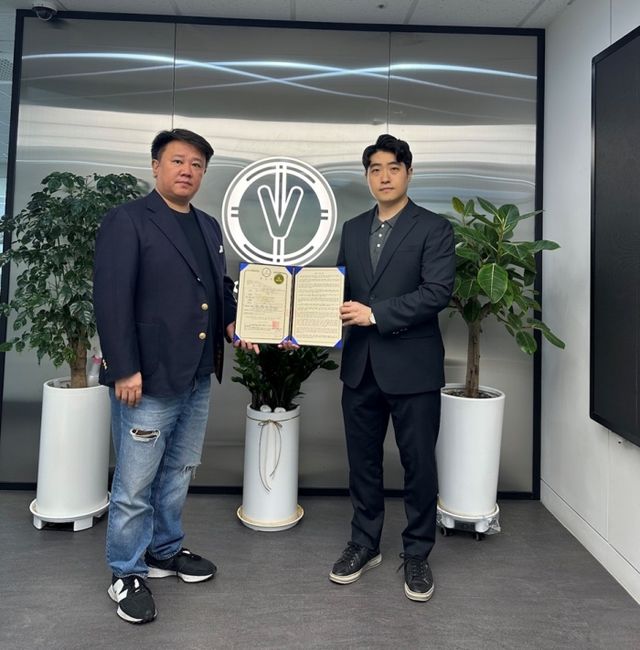 | ▲ 왼쪽 브이엠에스코리아 박가람 대표이사와 최초발급자 한00 인증샷 |