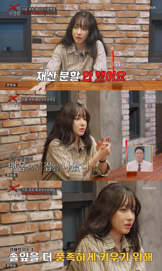 유깻잎은 "재산 분할 안 했다"고 이야기했다. 그는 "아무것도 안 주던데. 그래서 아무것도 안 가지고 나왔다"고 밝혔다.