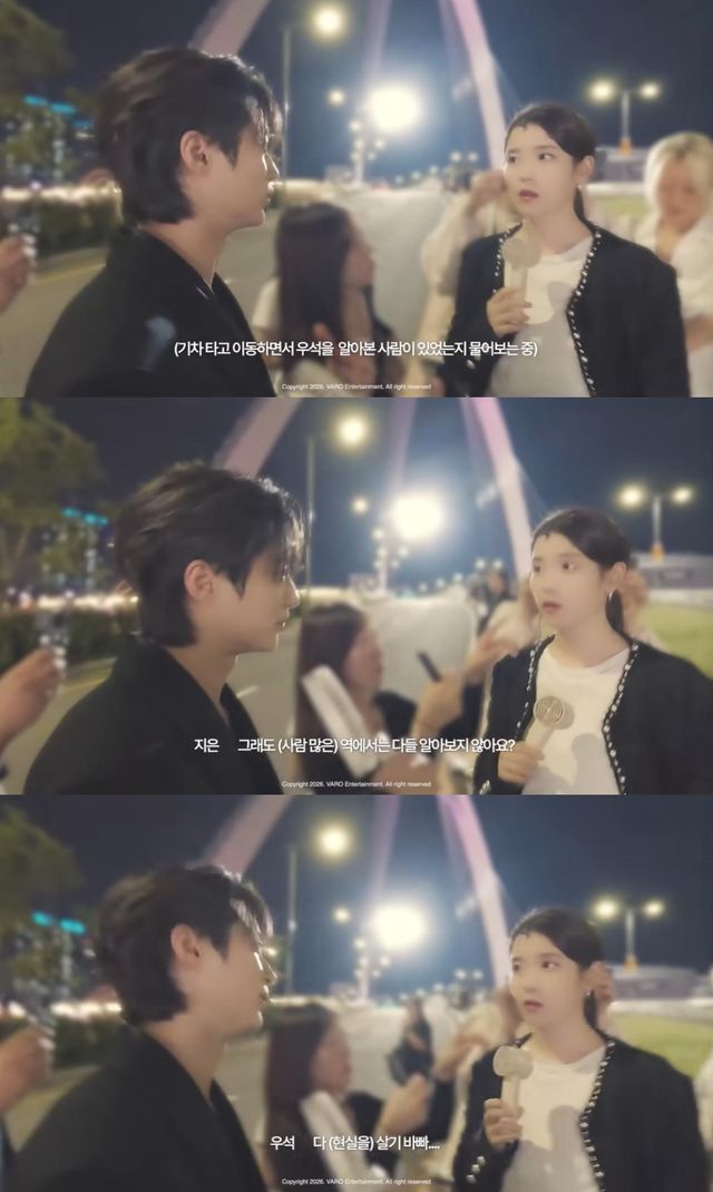 변우석은 "고개 숙이고 이렇게 가면 (모른다)"고 덧붙였고 아이유는 "역에서는 좀 알아보지 않냐"고 재차 물었다.