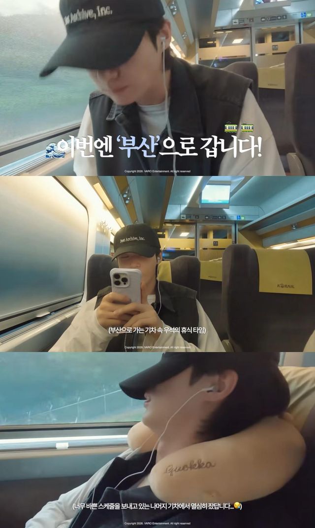 변우석은 촬영을 위해 기차를 타고 부산으로 향했다.