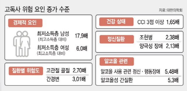 특히 고독사를 예방하려면 단순히 1인 가구 여부만 검토할 게 아니라 저소득층이면서 여러 질환을 앓고 의료기관 이용이 잦은 사람을 집중 관리해야 한다는 국내 대규모 연구 결과가 나왔다.