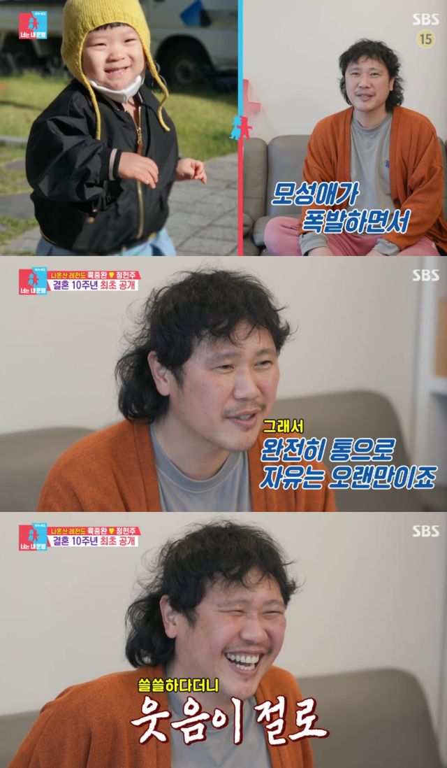 이에 대해 "아내가 아이를 위해 모든 걸 바치는 삶을 살고 있다. 그렇게 자유롭던 사람이 아이를 낳더니 모성애가 폭발해서 완전히 달라졌다. 아이를 두고 어딜 가지를 않는다. 그래서 이렇게 온전한 자유는 10년만"이라고 행복해했다.