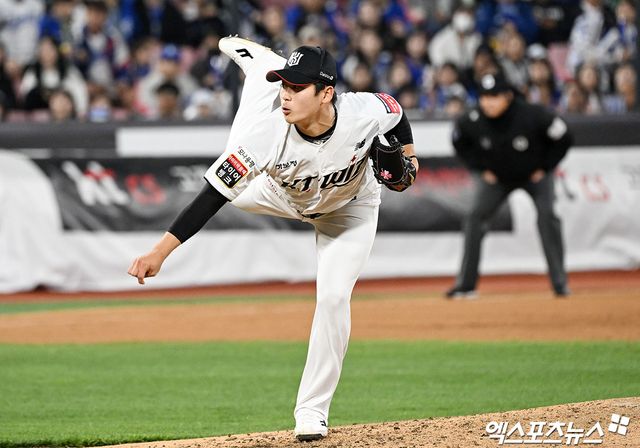 (엑스포츠뉴스 수원, 유준상 기자) KT 위즈 마무리투수 박영현이 위력적인 구위를 뽐내며 팀의 승리에 기여했다.