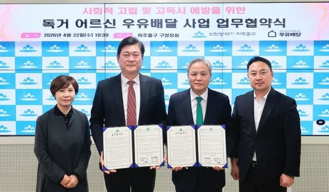 [파이낸셜경제=김영란 기자] 인천 미추홀구는 22일 (사)어르신의 안부를 묻는 우유배달과 독거 어르신의 건강한 생활 지원 및 고독사 예방을 위한 ‘어르신의 안부를 묻는 우유배달 사업’ 업무협약을 체결했다.