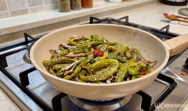 팬에 식용유를 두르고 꽈리고추를 1분간 가볍게 볶는다.