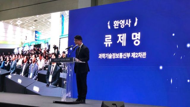 류제명 과학기술정보통신부 제2차관이 2026 월드IT쇼 개막식에서 환영사를 하고 있다. = 박지혜 기자