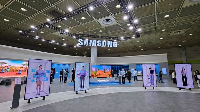 삼성전자는 전시장 입구에 무안경 3D 디스플레이인 스페이셜 사이니지를 설치하고, 115형 마이크로 RGB TV를 배치했다.