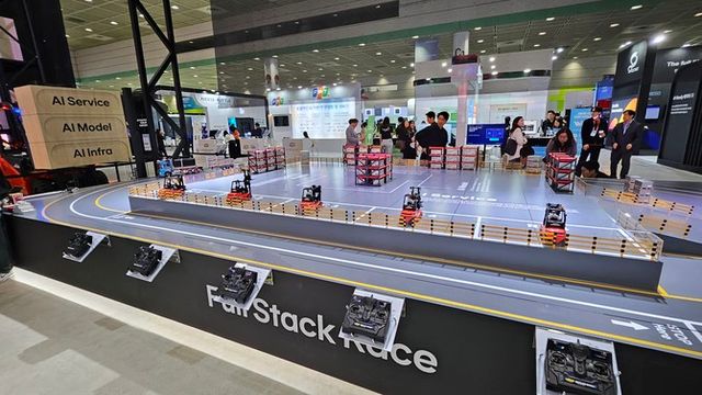 KT는 전시관에서 'K-RaaS(KT Robot as a Service)'를 통한 산업 현장 피지컬 AI 시연을 진행했다. = 박지혜 기자