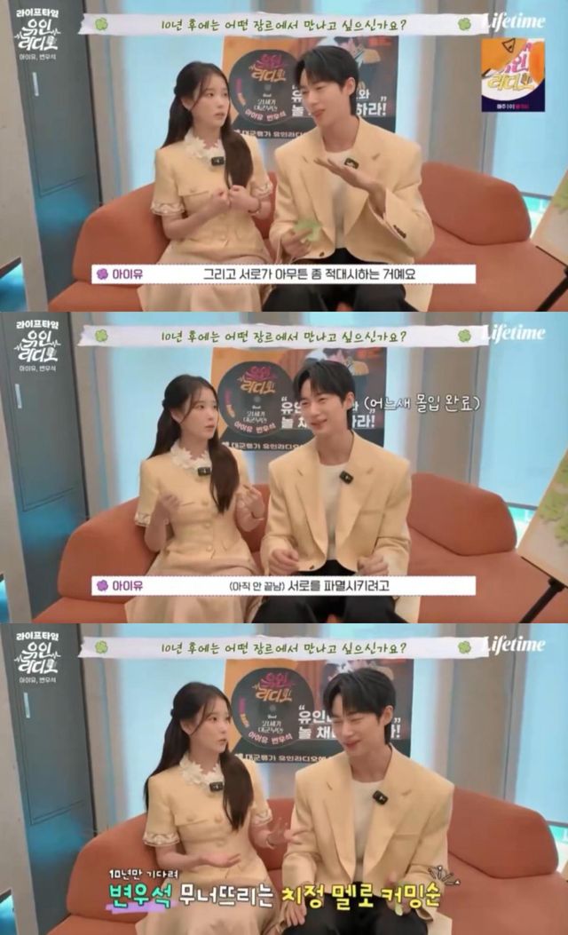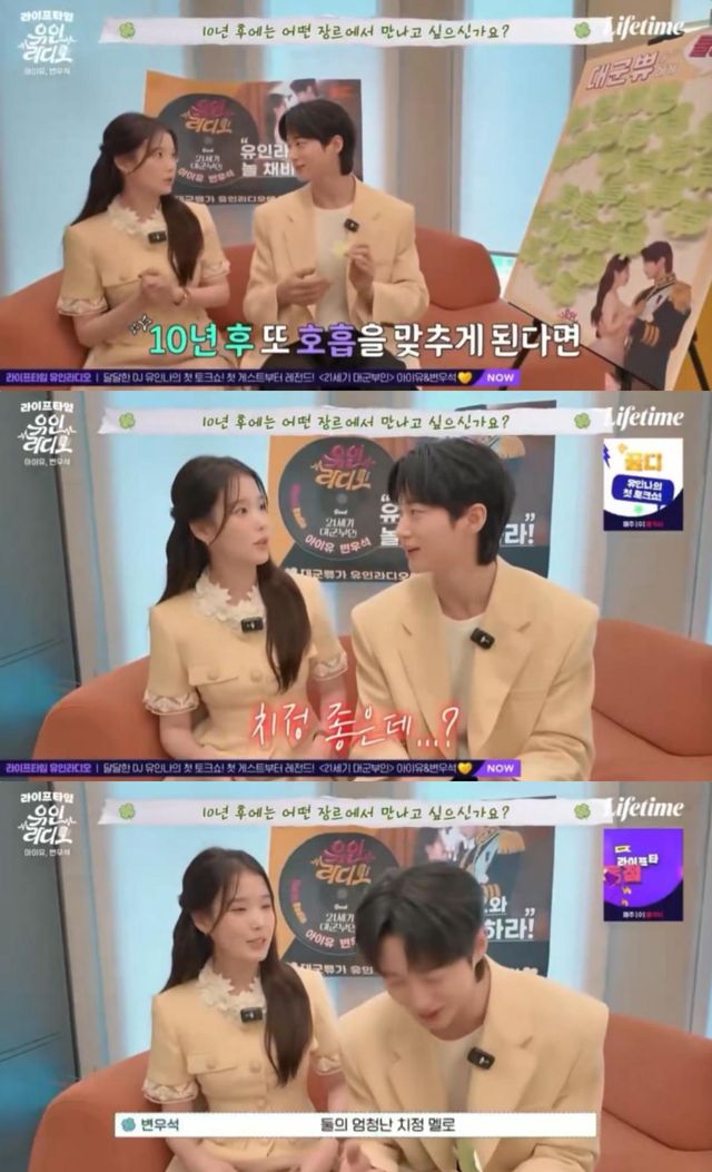 이날 변우석과 아이유는 10년 후 어떤 장르에서 만나고 싶냐는 질문을 받았다.