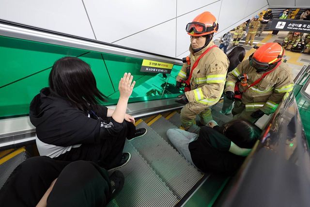 에스컬레이터에 구조 작업 자료 사진 / 뉴스1