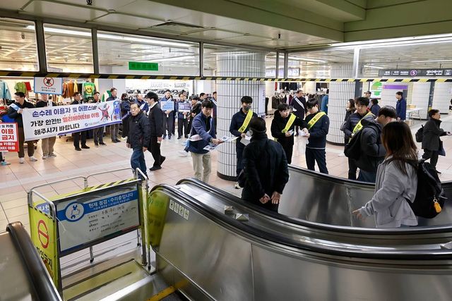 넘어짐 사고 예방 대시민 캠페인 하는 서울교통공사 직원들 / 서울교통공사 제공, 연합뉴스