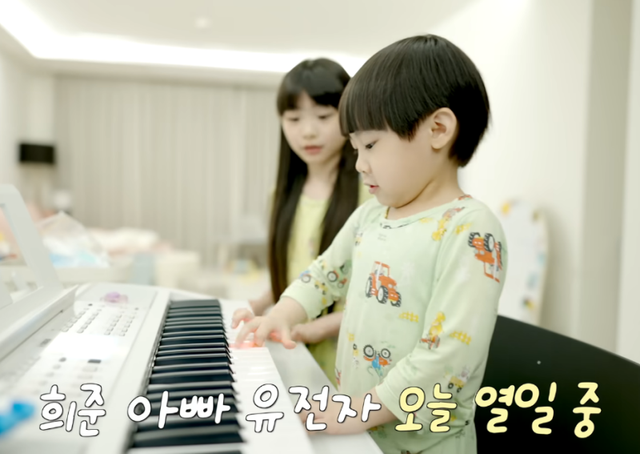 문희준은 장녀 희율 양과 함께 난장판이 된 집안 풍경을 비췄다. 이 가운데 눈길을 끈 건 둘째 아들 희우 군의 피아노 실력이었다.