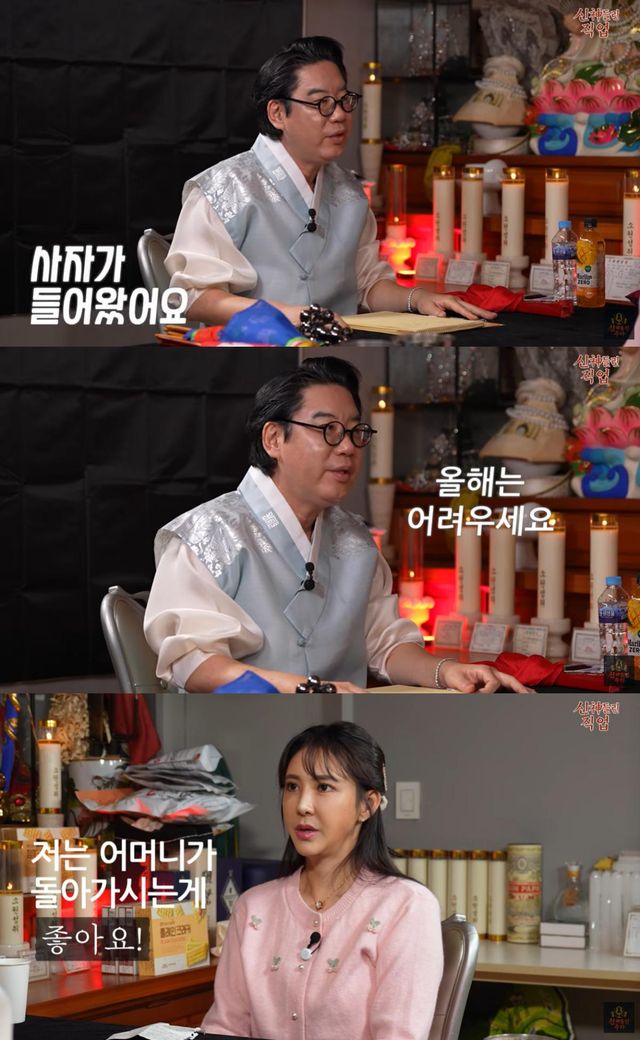 김세인은 "어렵다는 게 돌아가신다는 거냐"고 물었고, 무속인은 "사자가 들어왔다. 한 사람이 보인다. 이번년도 간다는 말이 나온다. 좋은 이야기가 아니라 말조심하면서 말하고 있다"고 전했다.