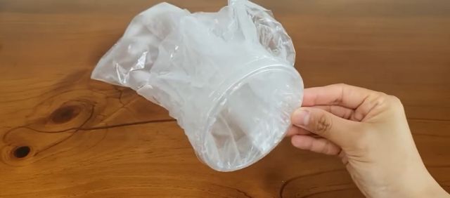 컵을 깨끗이 씻은 후, 뚜껑 윗부분과 컵 몸통 부분을 칼로 잘라 테두리를 만든다. 몸통 부분은 약 1cm 정도 남기는 것이 좋다. 펀치로 구멍을 뚫고, 몸통 부분에 사용하고 남은 위생 봉지를 끼운 뒤 뚜껑을 덮는다. 케이블 타이로 싱크대 편한 위치에 고정하면 완성된다.