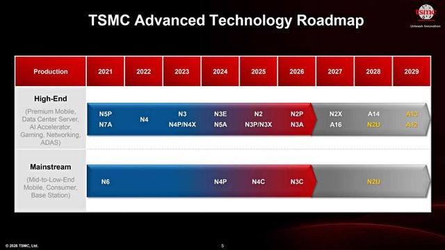 TSMC has laid out its process roadmap through 2029, adding A13 and A12 to its advanced-node sequence while choosing to extend the life of current EUV tools rather than move immediately to ASML’s most expensive High-NA systems.