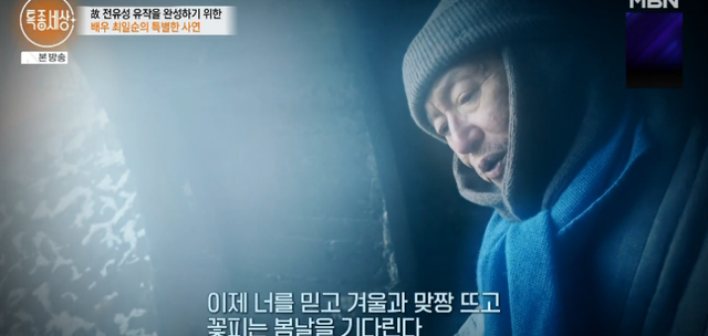이날 최일순은 故 전유성이 생전 마지막으로 출연한 영화 ‘겨울소풍-땅 끝에 선 사람들’을 작업 중이라고 밝혔다. 그는 “이 영화에 나왔으면 좋겠을 분들에게 편지를 보냈다. 제일 먼저 보낸 분이 전유성 선배님이었는데 선배님도 ‘이런 작업 나도 하고 싶었어. 같이 한번 하자. 나도 같이 할게’라고 하셔서 차츰 한분 씩 캐스팅을 하게 됐다”고 말했다.