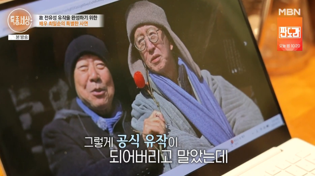 전유성의 격려 속 함께 작업을 시작했으나 그의 건강이 실시간으로 좋지 않아졌다고 떠올렸다. 최일순은 “(영화 촬영 당시) 응급실만 한 세 번 이상 입퇴원을 반복하셨다. 이 작품이 유작이 될 줄은 정말 몰랐다”며 “계속 보고 있으니까 그립다. 아직 살아 계신 것 같다”고 애틋해했다.