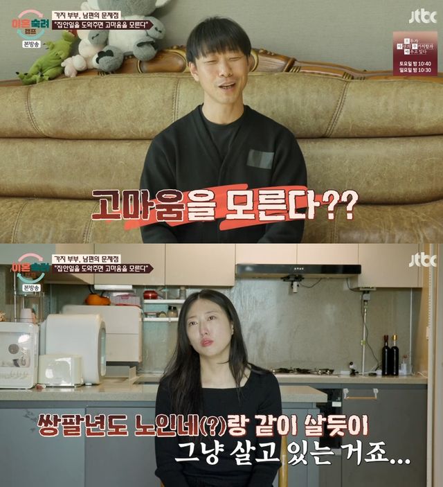 아내는 "옛날 사람 같다. 가부장적이다. 쌍팔년도 노인네랑 같이 사는 듯이 그냥 산다"고 체념했다.