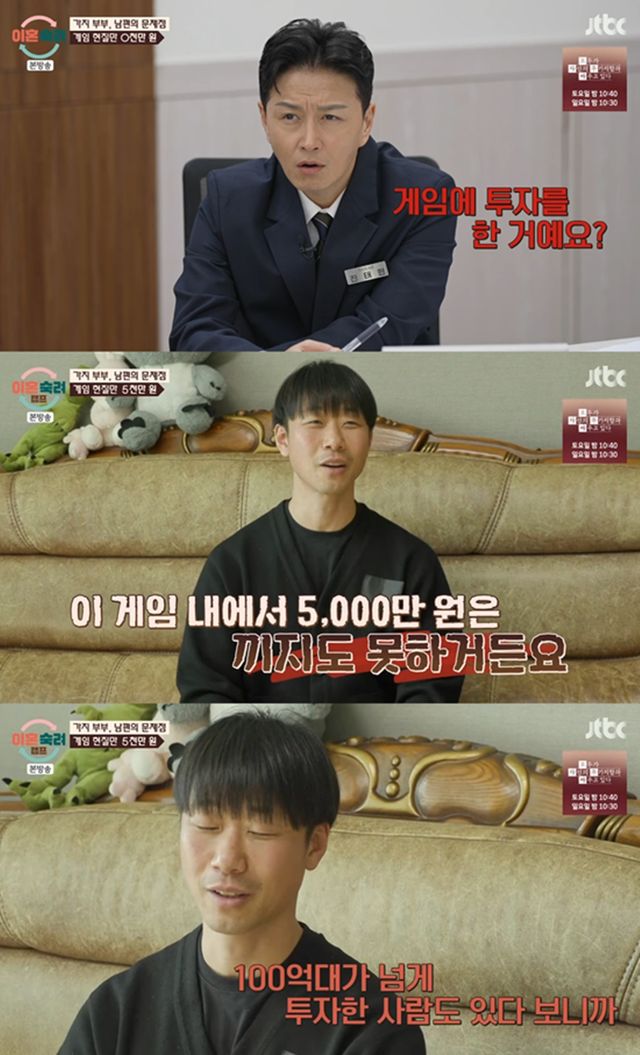 아내는 "2017년 결혼하고 나서 지금까지도 게임을 하고 있다. 중독이다"라며 남편의 모습을 질책했다. 특히 가지 남편은 게임 현질까지 했다.