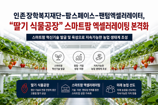 [파이낸셜경제=김지훈 기자] 인존장학복지재단(이사장 김정미, 설립자 전 전북 도의원 김택성)이 농업경제 원스톱 플랫폼 ‘팜스페이스(FARMSPACE)’ 및 기업 M&A·IPO 엑셀러레이팅 전문 전략그룹 팬텀엑셀러레이터와 함께 ‘딸기 식물공장’ 기반 스마트팜 엑셀러레이팅 사업을 본격화했다.