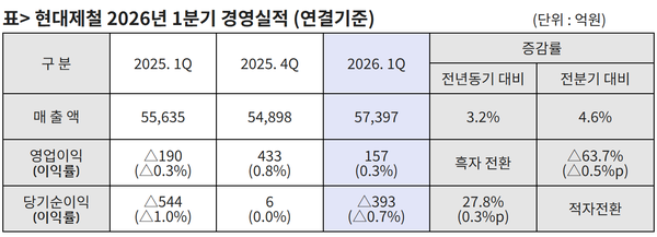 현대제철의 2026년 1분기 실적은 숫자만 놓고 보면 '부진'에 가깝지만, 내용을 들여다보면 오히려 향후 전략 방향이 보다 또렷해졌다는 평가가 가능하다. 매출은 판매량 증가에 힘입어 소폭 개선됐지만, 영업이익이 크게 감소한 점은 현재 철강 산업이 직면한 구조적 부담을 그대로 드러낸다. 특히 환율 상승과 원자재 가격 부담이 동시에 작용하며 수익성을 크게 훼손한 점은, 전통 철강 사업이 외부 변수에 얼마나 취약한지를 다시 확인시킨 대목이다.