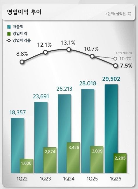 반면 현대차와 마찬가지로 대외 변수 영향으로 인해 수익성이 악화됐다. ▲미국 관세 부과에 따른 비용 증가 ▲북미 및 유럽 시장 경쟁 심화에 따른 인센티브 증가 ▲1분기 말 원·달러 환율 급등에 따른 외화 판매보증충당부채 증가 등 외부 변수에 따른 비용이 집중적으로 반영됐다.