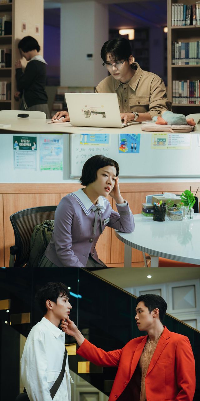 의주의 상상력이 집약된 소설 '우린 친구였어' 속 캐릭터 또한 파격적인 비주얼로 시선을 사로잡는다. 현실의 선생님들과는 180도 다른 치명적인 분위기의 ‘우수’, ‘기전’(손정혁), ‘동주’(김동규)는 지독한 ‘혐관 케미’로 도파민을 예고한다.