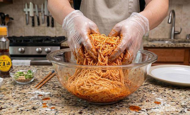 면은 삶은 직후 찬물에 치대듯 헹궈야 식감이 살아난다.