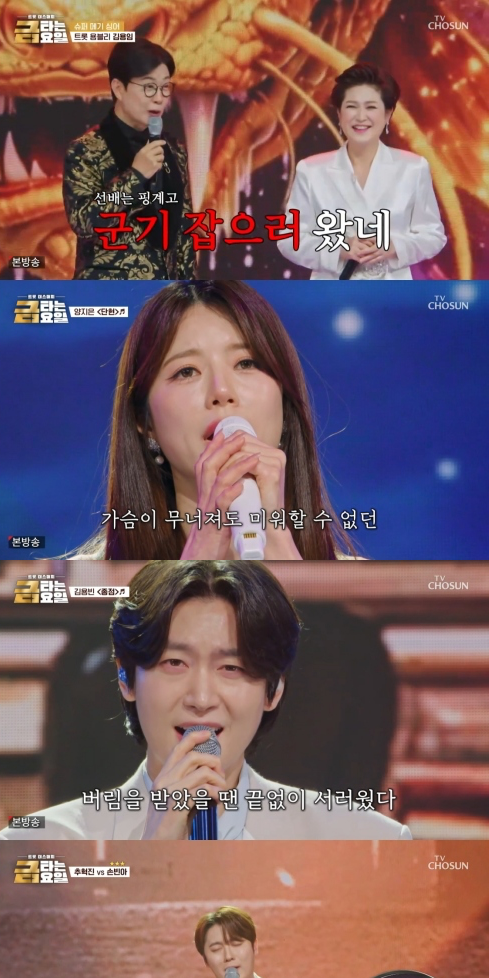 이어 춘길과 김용빈의 맞대결도 펼쳐졌다. 춘길은 ‘화등’으로 99점을 기록하며 김용빈을 지목했고, 김용빈은 ‘종점’으로 극찬을 받았지만 93점에 머물렀다. 결국 춘길이 승리를 가져가며 설욕에 성공했다.