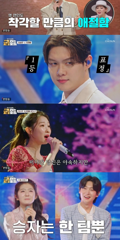 천록담은 ‘남행열차’로 에너지를 터뜨렸고, 양지은은 ‘단현’으로 감정을 극대화했다. 원곡자 김수희의 눈물까지 이끌어낸 양지은은 98점으로 승리하며 김용임과 맞붙었다.