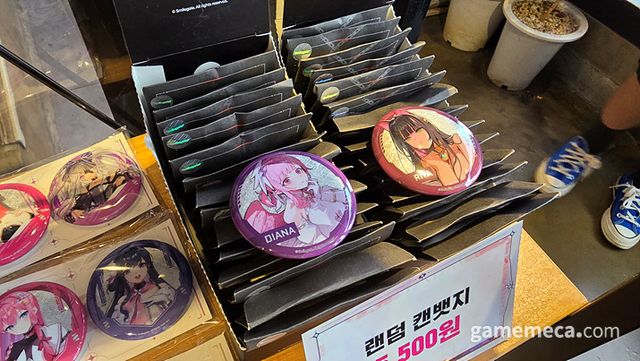 ▲ 아크릴 피규어, 캔뱃지, 티셔츠 등 다양한 굿즈도 빠질 수 없죠 (사진: 게임메카 촬영)