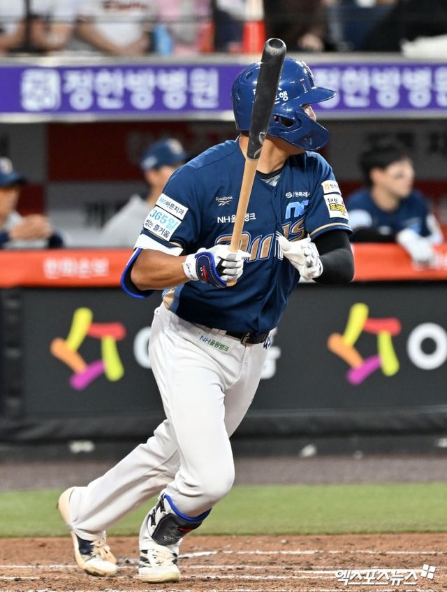 이호준 NC 감독은 "아마 플라이가 처음 갔을 것이다"라며 "많이 긴장했을 것이다. 파워히터가 치는 순간 뒤로 갔다가 오는 게 몸에 베어있었을 것"이라고 했다.