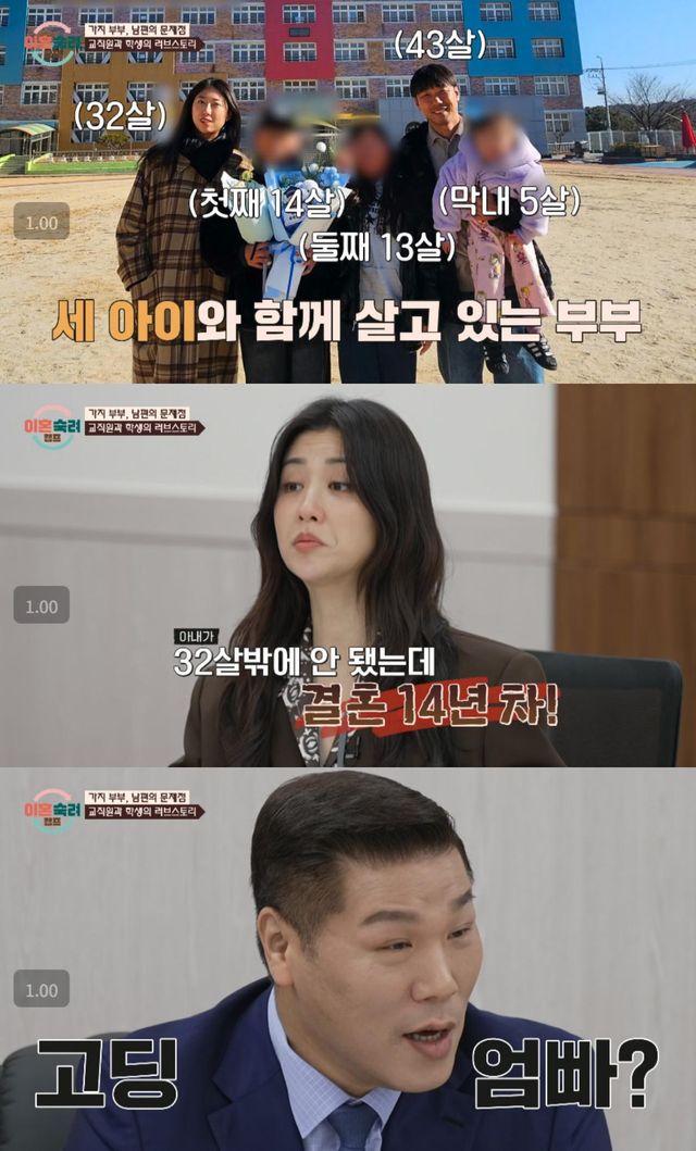 이에 패널들은 "첫째와의 나이 차가 19살", "32살 밖에 안 됐는데 결혼 14년 차, 중1 아들이 있다"며 계산을 시작했다.