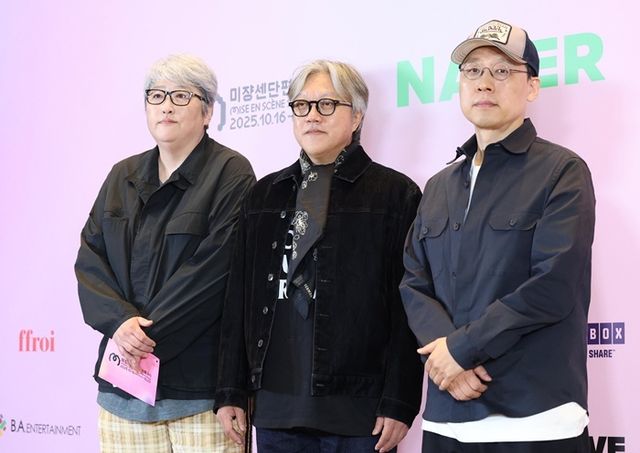 변영주(왼쪽부터) 감독과 최동훈 감독, 김성훈 감독이 16일 오후 서울 용산구 CGV용산아이파크몰에서 열린 ‘제21회 미쟝센단편영화제’에 참석해 포즈를 취하고 있다. 2025.10.16/뉴스1