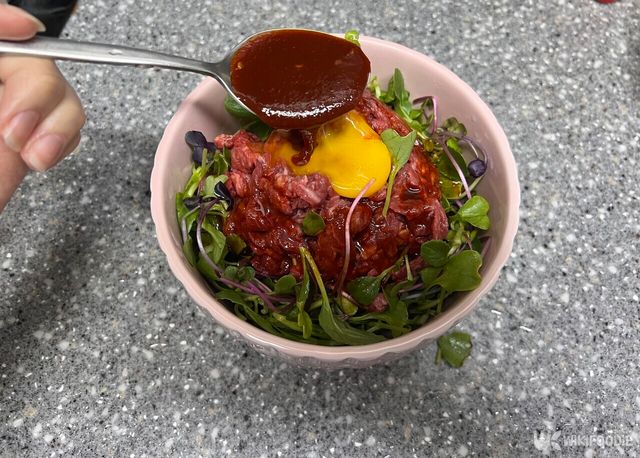 노른자가 먼저 터지면서 밥을 부드럽게 감싸고, 그 위로 고기와 채소가 자연스럽게 섞인다. 수저로 비빌 때는 크게 원을 그리기보다 여러 번 나눠 뒤집듯 섞는 것이 좋다. 그래야 밥의 포근함은 남고, 육회의 부드러움과 채소의 산뜻한 식감이 함께 살아난다.