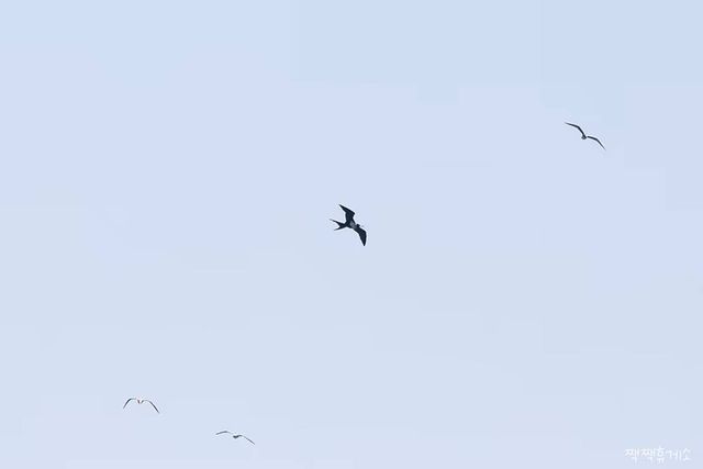 뉴스1 보도에 따르면 울산시는 동구 대왕암공원 앞바다에서 희귀조류 군함조 1마리가 관찰됐다고 22일 밝혔다. 이 개체는 지난 7일 오후 2시께 탐조단체 ‘짹짹휴게소’ 홍승민 대표가 대왕암공원에서 탐조 활동을 하던 중 갈매기 무리 사이를 비행하는 모습을 사진으로 포착하면서 확인됐다. 군함조는 그동안 울산에서 몇 차례 목격된 적은 있었지만 사진으로 기록된 것은 이번이 처음인 것으로 알려졌다. 현장에서 잠깐 스쳐 지나간 목격담과 달리, 실제 촬영 기록으로 남았다는 점은 이번 관찰의 가치를 한층 키운다.