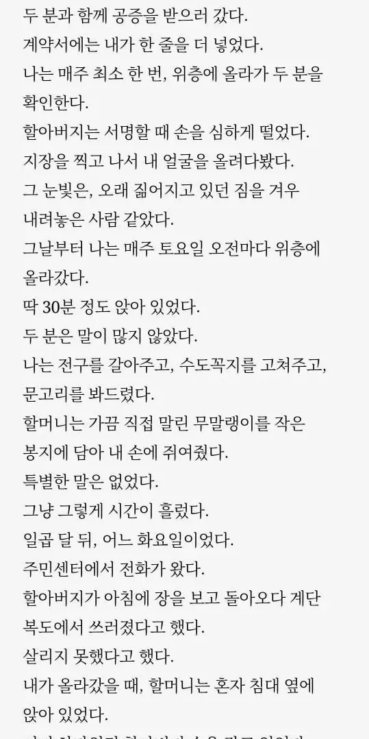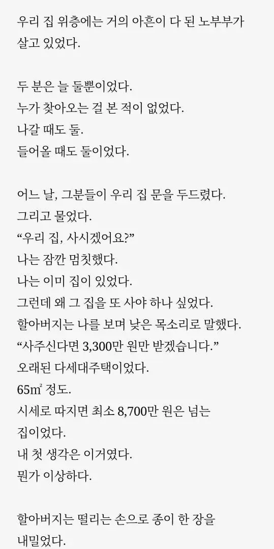 위층 노부부가 자신의 집을 3300만 원에 사달라고 했다