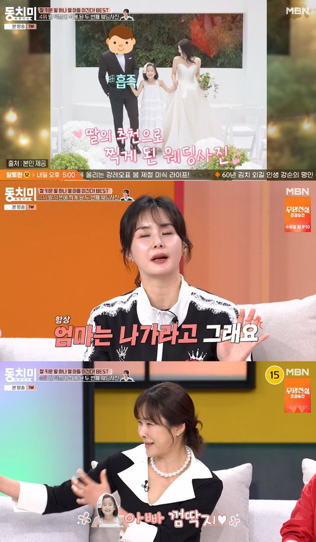 특히 최정윤의 11살 딸은 부모의 웨딩사진 촬영을 적극 권했다고. 최정윤은 "처음에는 혼인신고만 하고 남편과 살고 있었다. 근데 딸이 부부는 결혼을 해야 한다고 하더라. 사진이라도 찍자고 하더라"라며 딸 덕분에 지난해 10월 웨딩 촬영을 마쳤다고 했다.