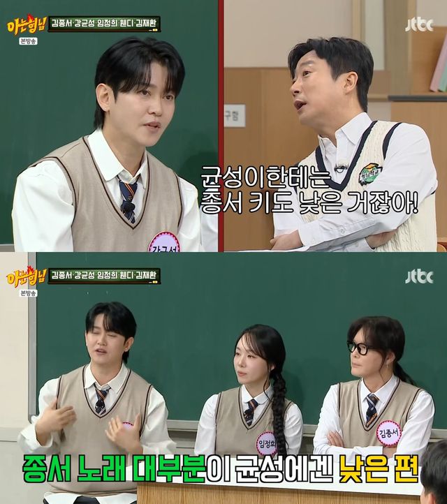 이에 강호동은 "균성이한테는 종서 키도 작은 거냐"고 물었고, 강균성은 "종서 키도 낮다. 기본적인 종서 노래 대부분이 나한테는 낮다. 더 높아야 편하다"고 답해 놀라움을 자아냈다.