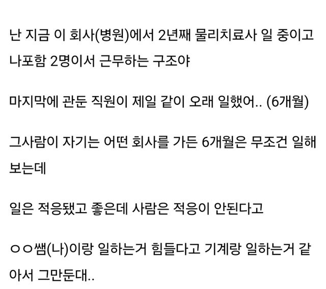 내가 기계 같아서 같이 일 못하겠다고 4명째 관뒀는데