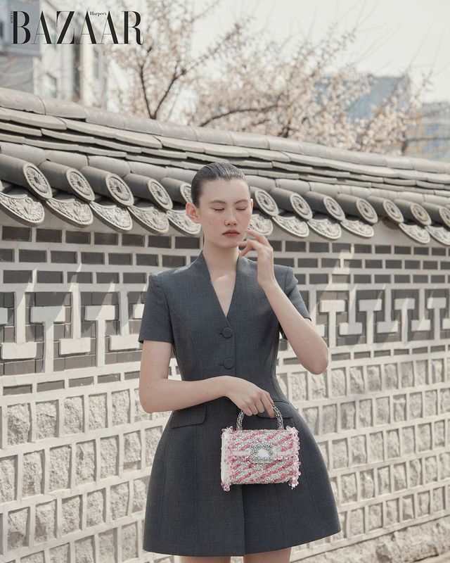 ‘제브르 봉봉(Zèbre Bonbon)’ 백은 Roger Vivier. 드레스는 Self-Portrait.