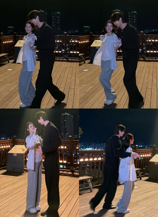 변우석은 25일 자신의 사회관계망서비스(SNS)에 춤추는 남녀 이모티콘과 함께 여러 장의 사진을 게재했다. 공개된 사진에는 다정한 분위기 속에서 왈츠를 추고 있는 변우석, 아이유의 모습이 담겼다.