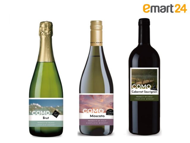 이번 신상 와인은 △꼬모 프랑스 스파클링(1만2900원) △꼬모 모스카토(1만2900원) △꼬모 까베르네소비뇽(9900원) 등 3종이다. 다른 산지와 개성을 담은 제품 구성이 특징이다.
